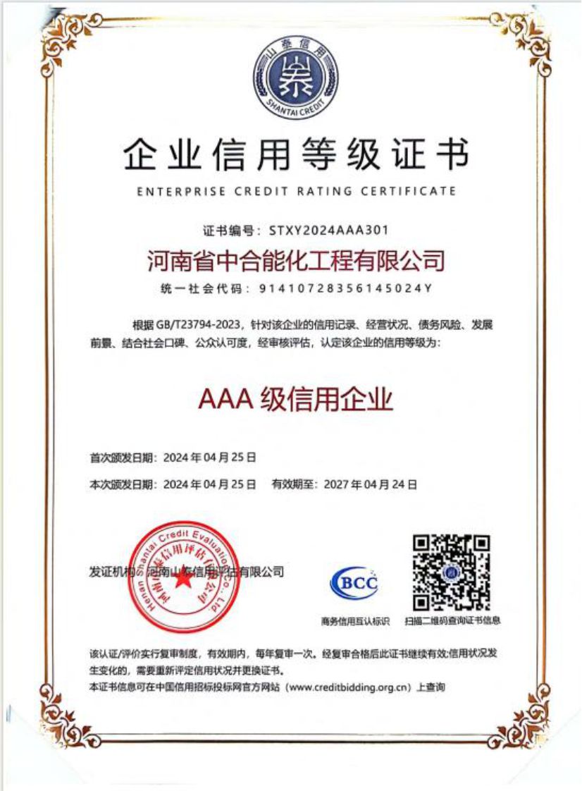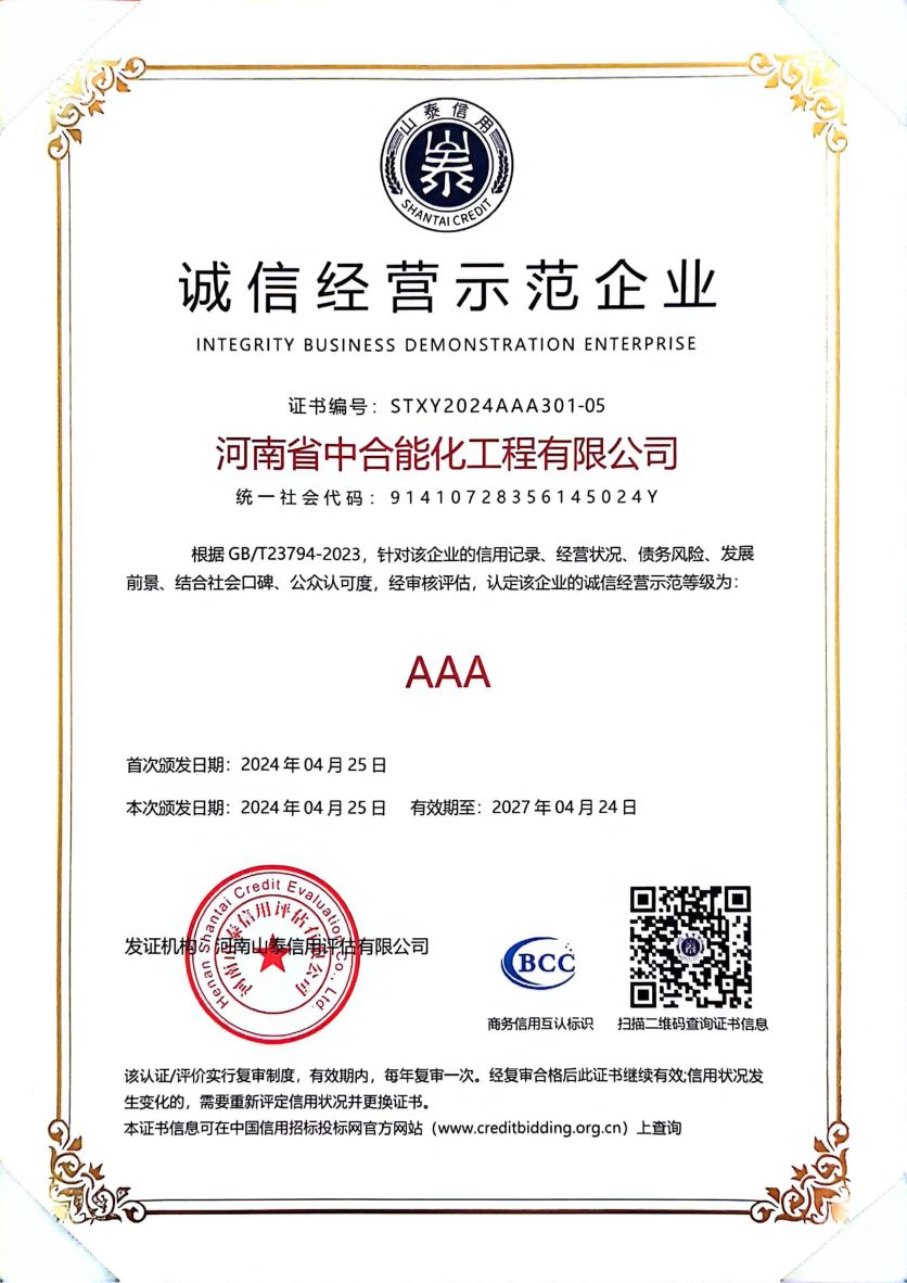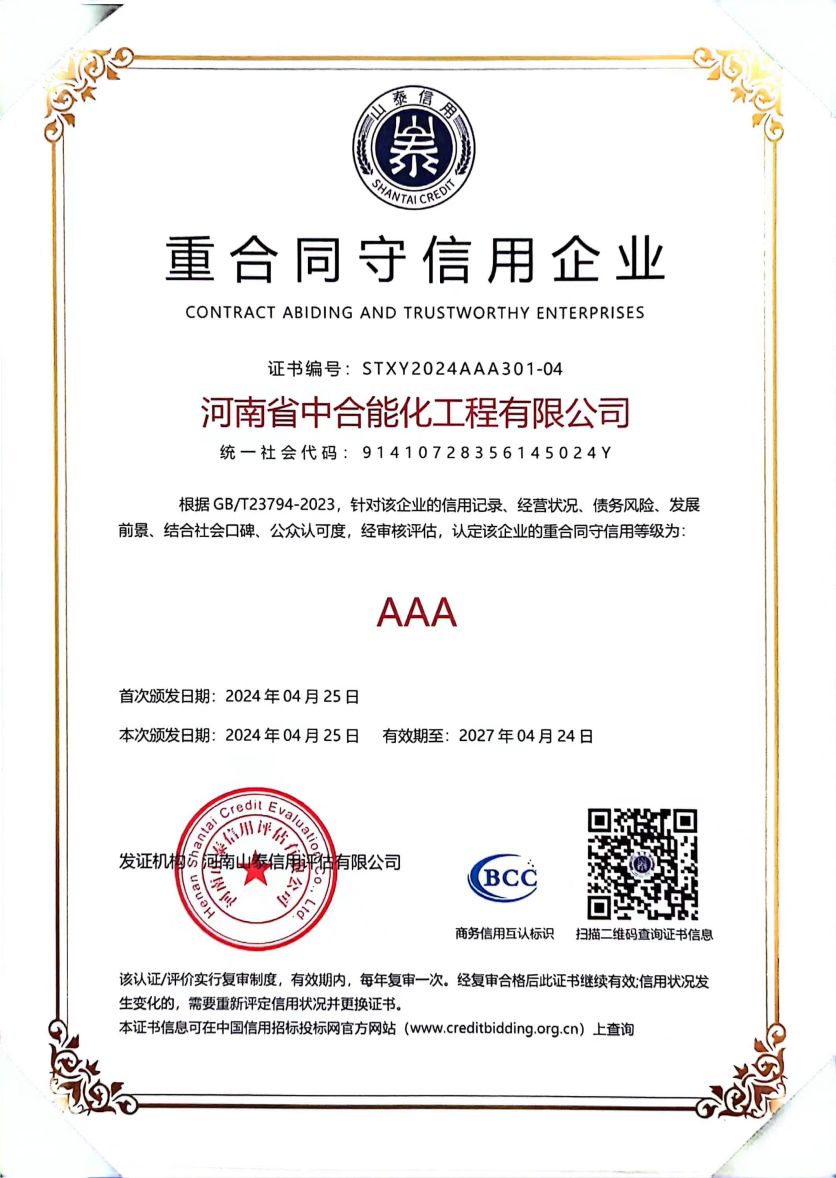河南省中合能化工程有限公司以“团结敬业、开拓创新、追求卓越”的企业精神,以“一流的服务,一流的质量”竭诚与社会各界携手,迎接新的挑战,创造新的辉煌。