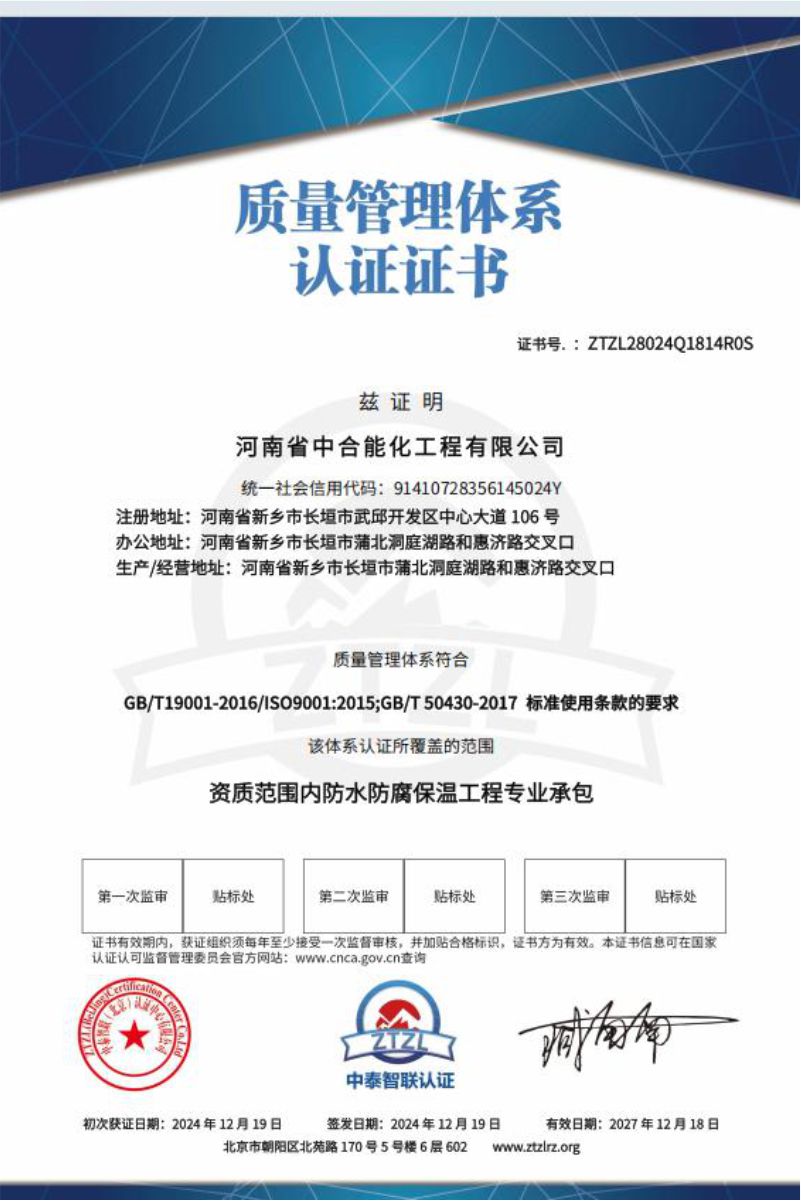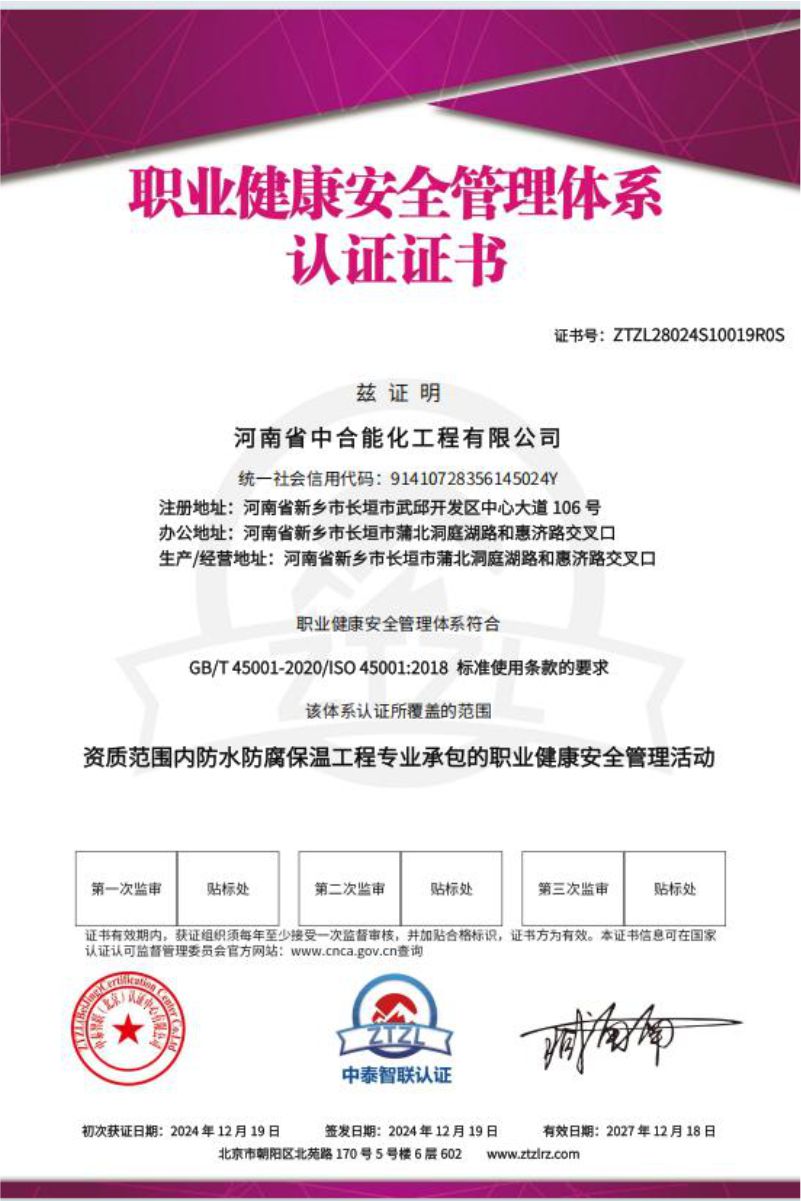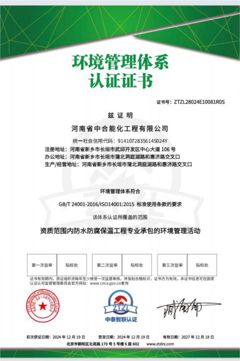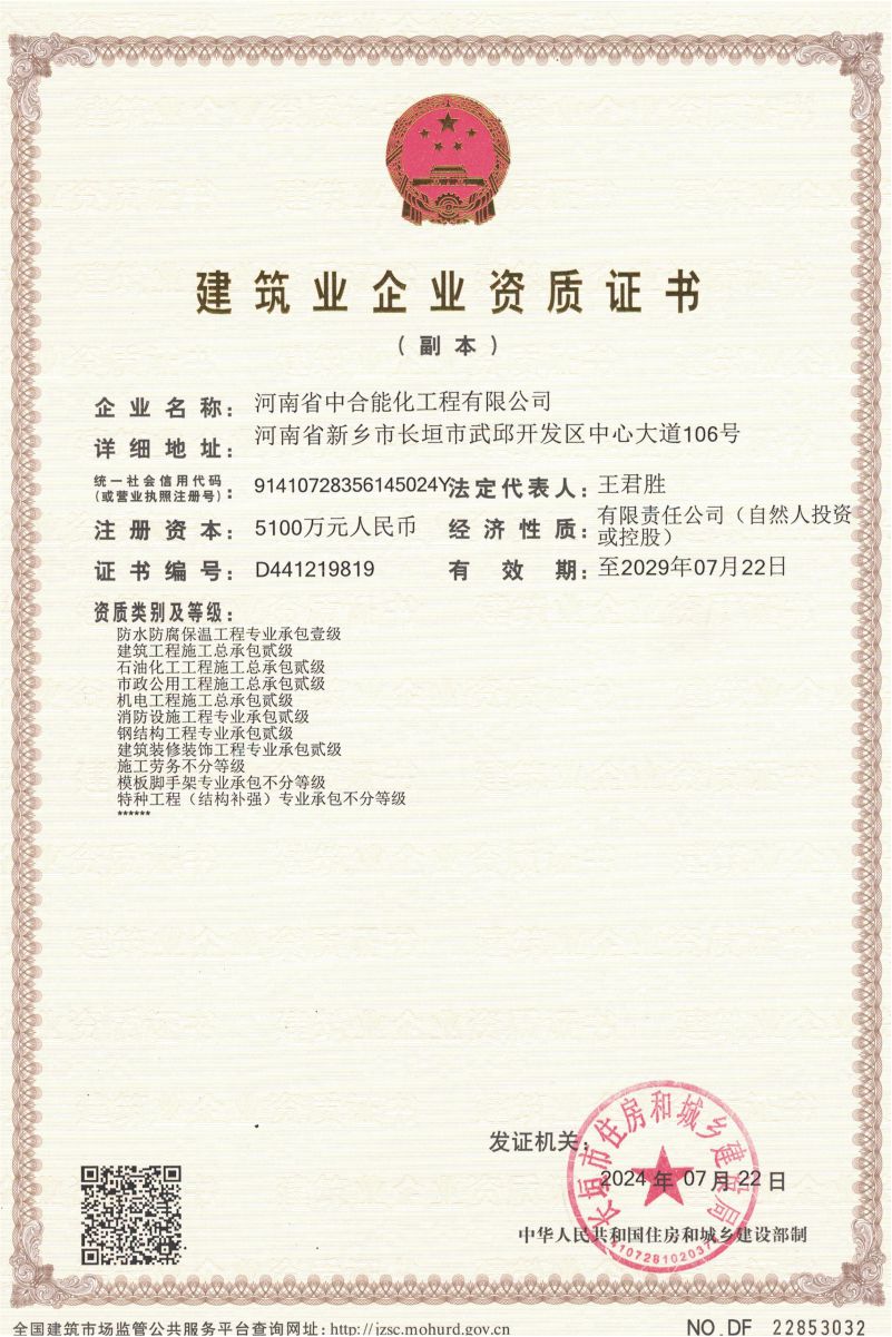 河南省中合能化工程有限公司以“团结敬业、开拓创新、追求卓越”的企业精神,以“一流的服务,一流的质量”竭诚与社会各界携手,迎接新的挑战,创造新的辉煌。